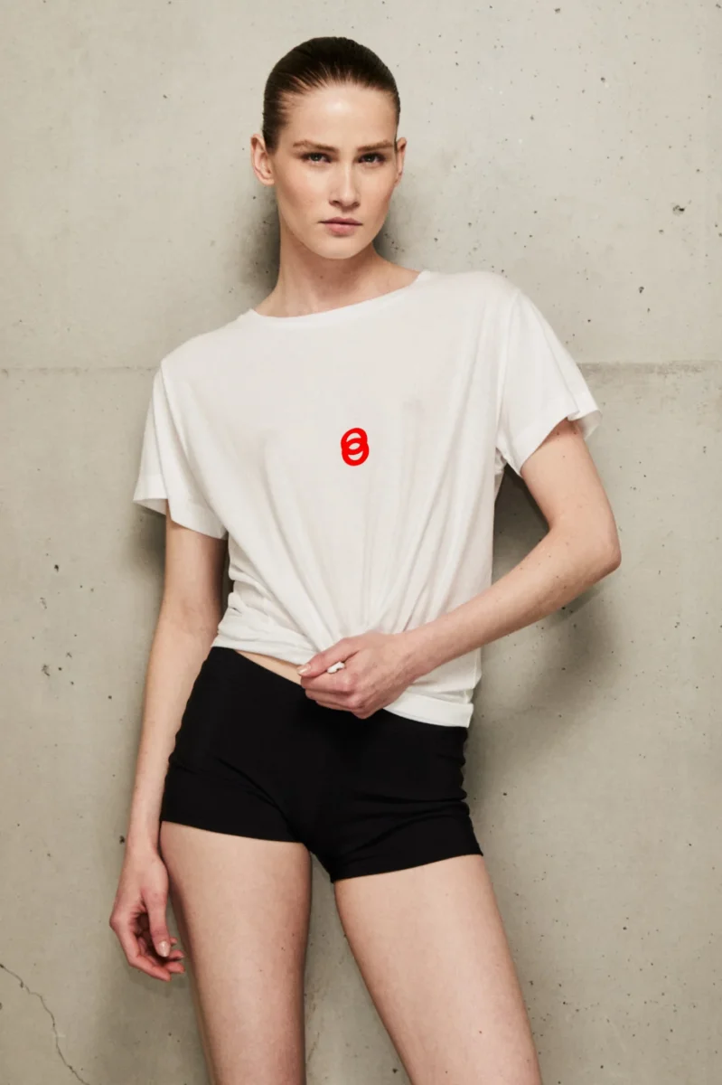 Avec son logo rouge sur fond blanc, il allie minimalisme et caractère. Sa coupe unisexe s’adapte à toutes les morphologies, pour un porté ajusté ou oversize selon les envies.